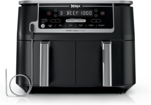 Best Overall: Ninja Foodi DZ550 For families who cook real meals on a daily basis, nothing on this list competes with the DZ550. The dual-basket system with Smart Finish genuinely changes how weeknight cooking feels, and the built-in thermometer is the kind of feature you don’t know you needed until you’ve used it. It’s large, it’s not cheap, and it earns both of those things.